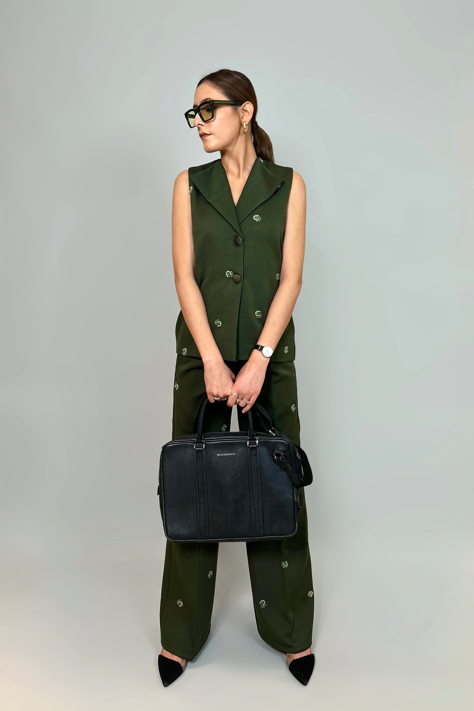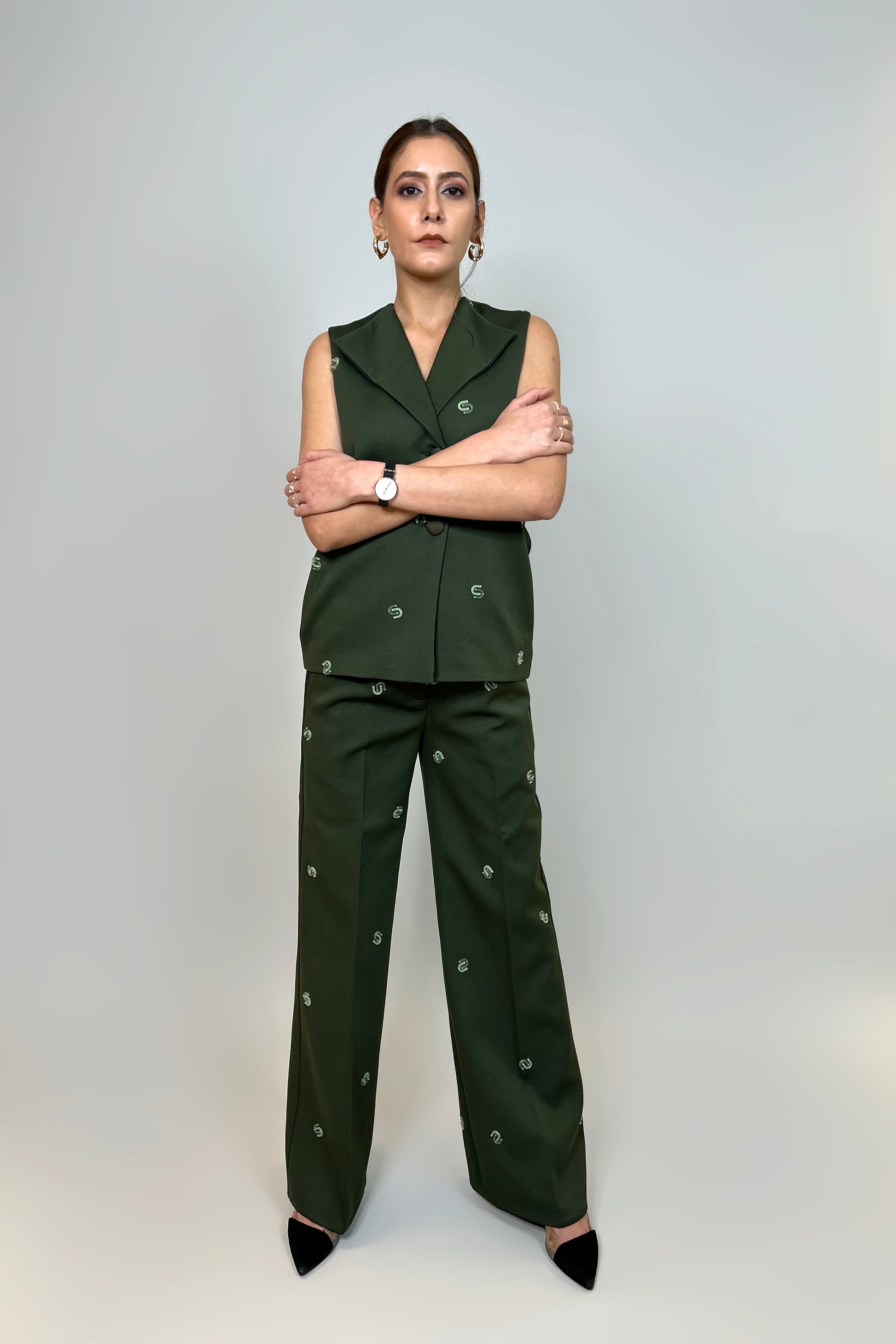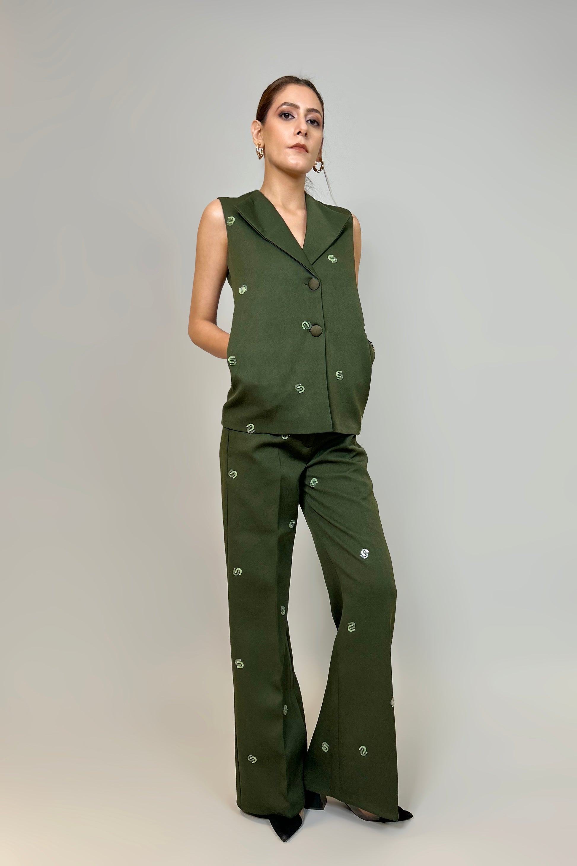 The Boardroom Set is a perfect mix of style and subtle detail. Featuring "Serpentine" pattern embroidery, it adds a unique touch to the clean, tailored look. The rich color and fine craftsmanship make it a standout piece, ideal for those who want to look polished yet effortless. Designed for versatility, it transitions seamlessly from work to an evening out, ensuring you stay refined and comfortable all day.